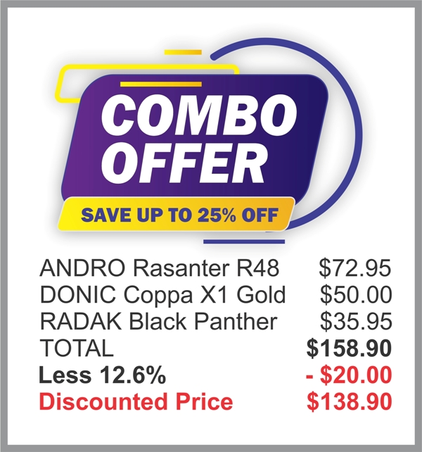 RADAK Black Panther Plus Andro Rasanter R48 and Donic Coppa Gold