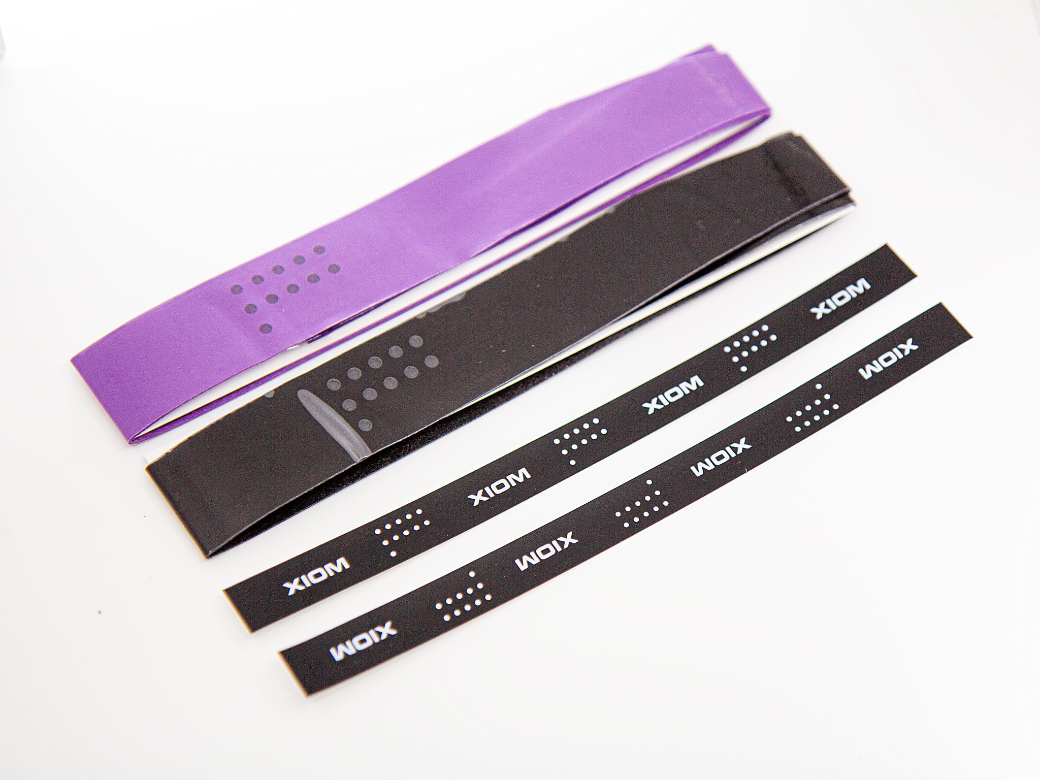 Xiom Grip tape, you will receive both Black and Purple Grip tapes. Adhesive on one side, with black finishing tape.